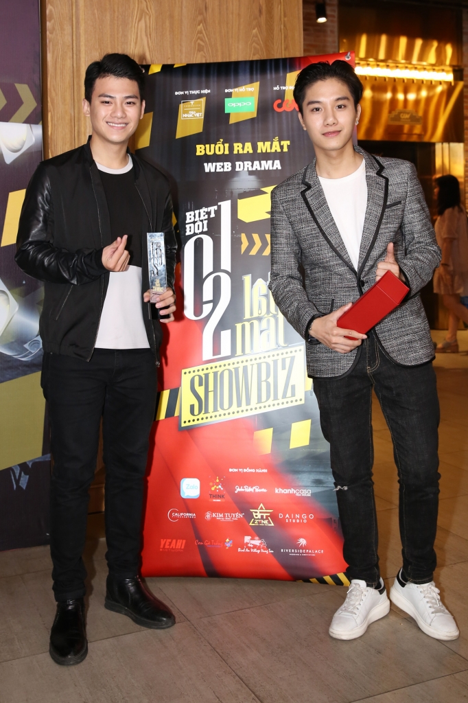 | | Tập thể nghệ sĩ tham dự buổi giới thiệu web drama Biệt đội 1-0-2: Lật mặt showbiz | |