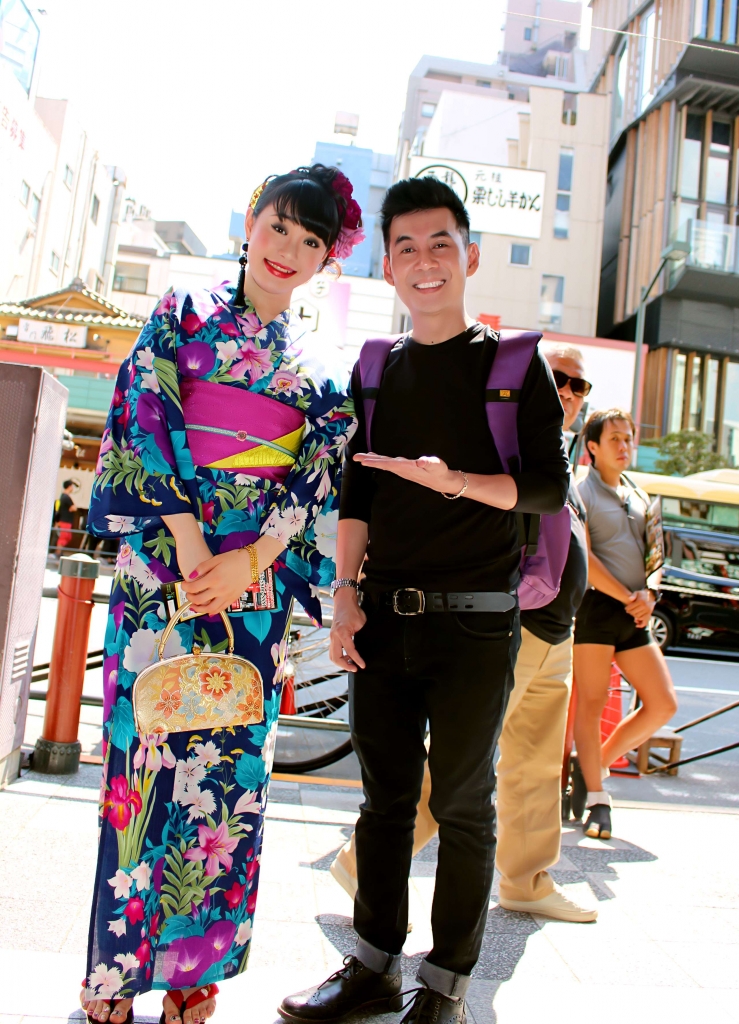 | | Và cũng nhanh chóng “làm quen” với một cô gái Nhật đang dạo phố với bộ quốc phục kimono truyền thống | |