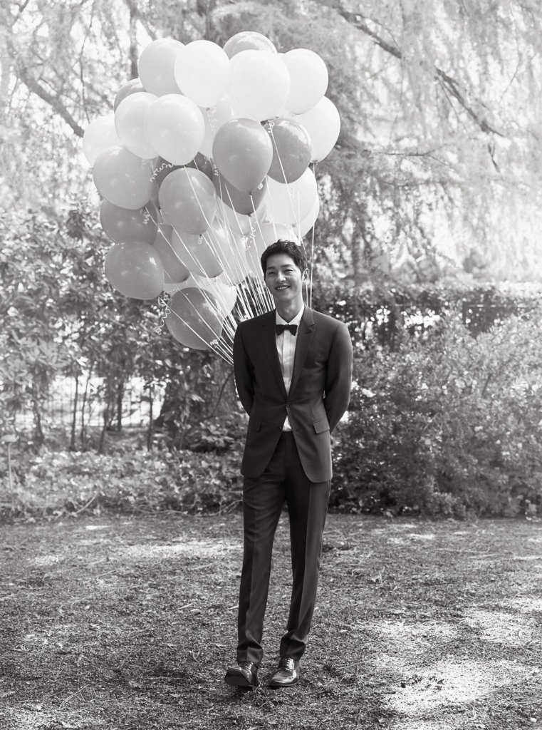 | Song Joong Ki không giấu được nụ cười trong ngày hôm qua. Nhiều người cho biết anh không thể rời mắt khỏi cô dâu của mình trong suốt buổi lễ |