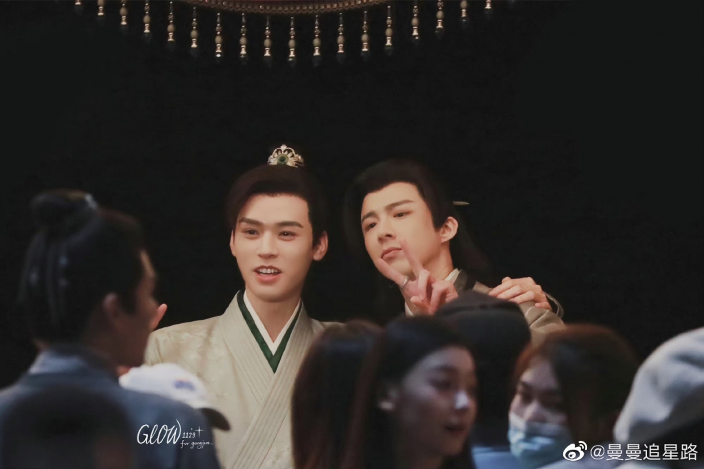Tại tiệc đóng máy, Lưu Vũ Ninh đã chủ động đến tìm Cung Tuấn đề nghị chụp hình chung. Nam chính, nam phụ miệng vẫn còn nhai thức ăn, hai má phúng phính vô cùng đáng yêu.