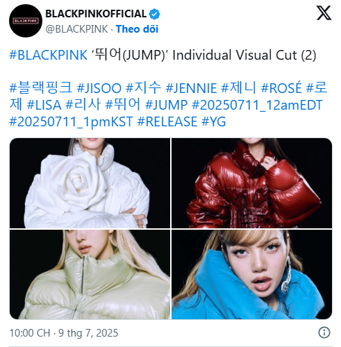 Sau một thời gian dài chờ đợi, BlackPink đã sẵn sàng phát hành video cho ca khúc mới JUMP, ra mắt trong đêm mở màn chuỗi concert DEADLINE của nhóm.