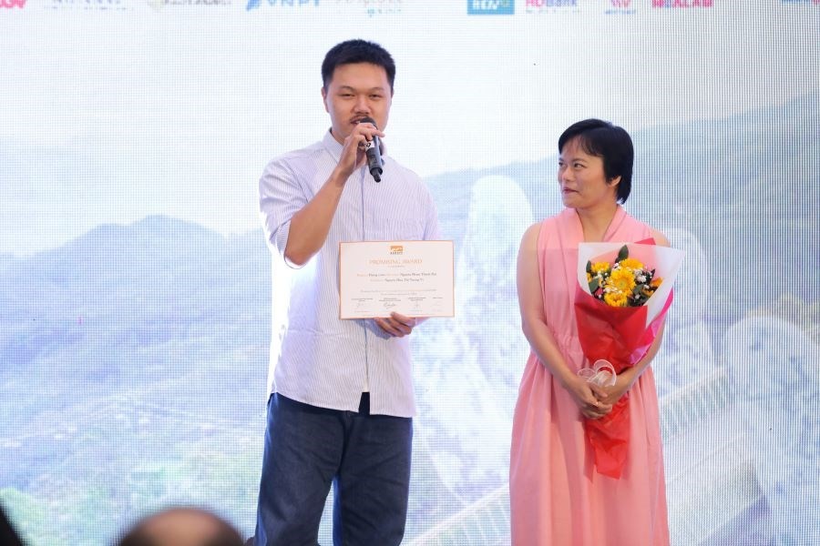 | Đạo diễn: Nguyễn Phạm Thành Đạt phát biểu trên bục nhận giải |