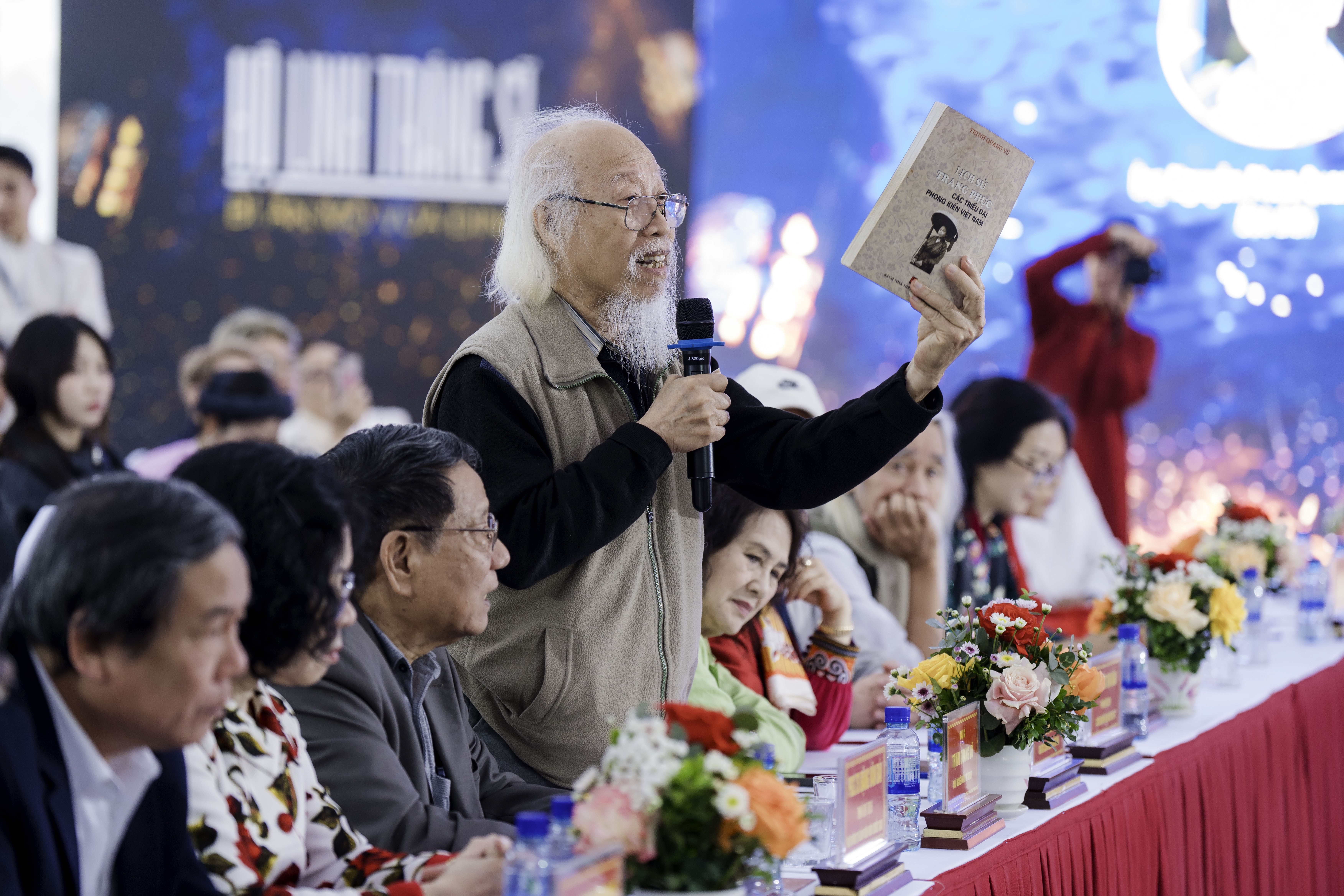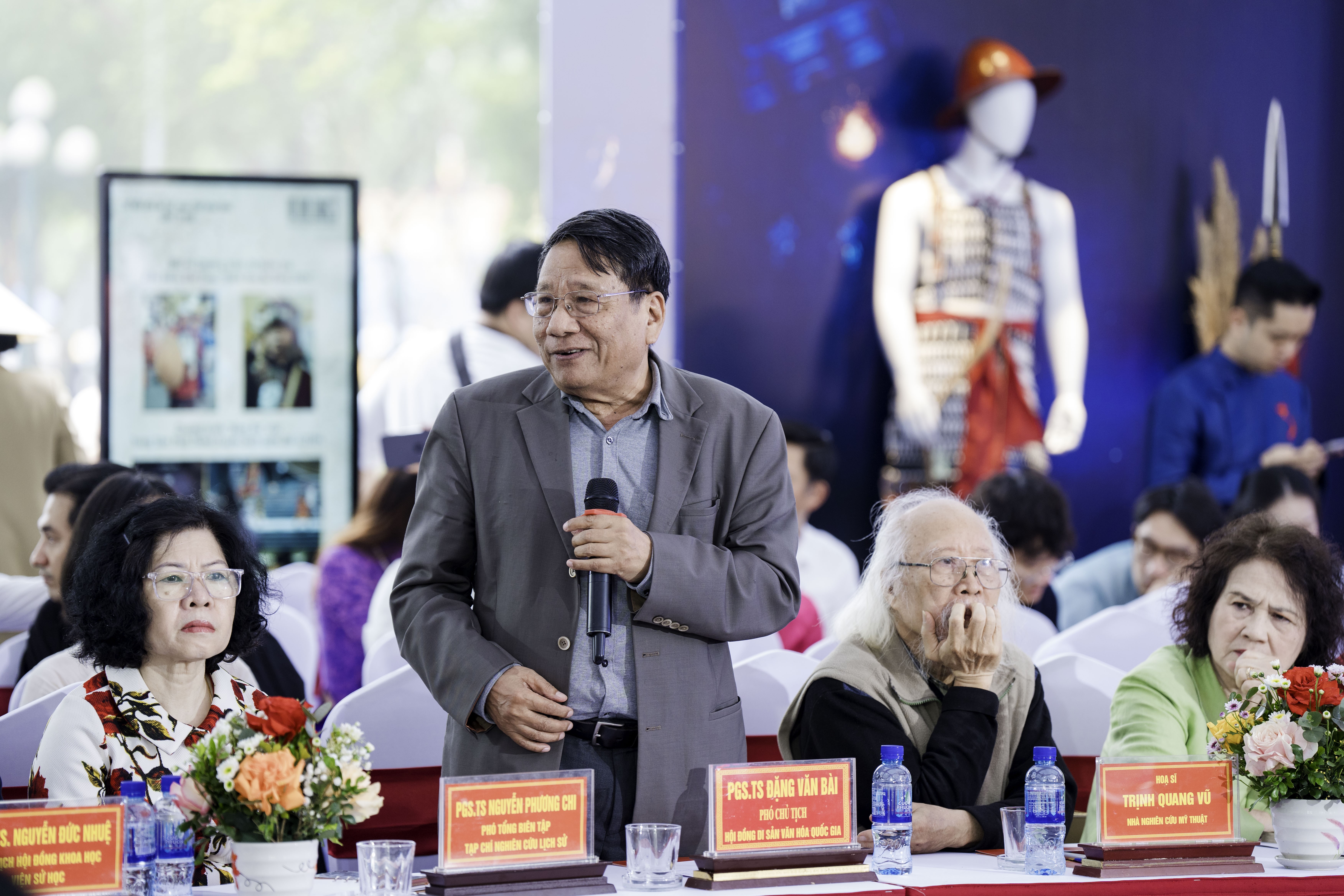 | Họa sĩ Trịnh Quang Vũ - Nhà nghiên cứu mỹ thuật đóng góp ý kiến về cổ phục thời Đinh trong Hội thảo |