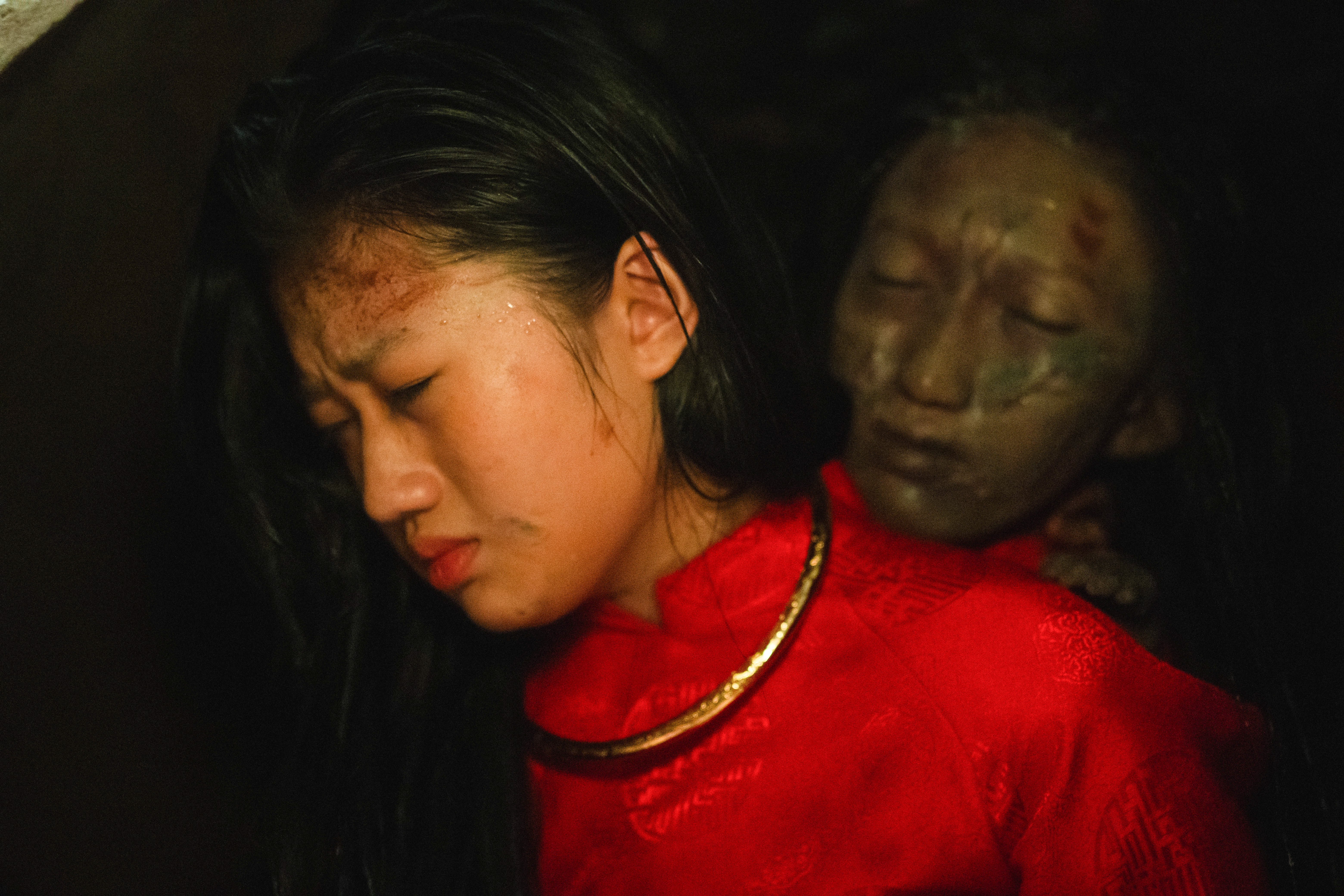 Với Mai Cát Vi, khi nhìn đầu silicon “thế thân cho chị gái” cô cũng lạnh sống lưng. Quá trình diễn với “búp bê” này trên lưng, diễn viên 16 tuổi gặp khá nhiều khó khăn vì chiếc đầu làm bằng silicon tương đối nặng. Cảnh quay trong chum nước, cô vô tình làm nứt cổ của “búp bê”, do đó vừa diễn, cô vừa tự nhắc mình bảo vệ sự an toàn cho “búp bê”. Cũng ở phân đoạn ám ảnh này, dù chỉ lên phim chưa đầy 1 phút nhưng Mai Cát Vi đã phải mất tới 4 tiếng hóa trang đặc biệt. “Ê-kip gắn từng mảnh da silicon lên mặt em rồi ‘tô vẽ’ thêm. Khi đeo lên để có đôi mắt ghê rợn của cô dâu ma, em khá khó chịu nhưng cố gắng làm quen. Đến lúc quay cảnh bò lên từ chum nước trong căn hầm ngột ngạt, hiệu ứng khói làm em bị ‘ngợp’, trong khi em vẫn phải giữ tâm lý để diễn xuất. Bù lại những vất vả đó, khi lên phim, khán giả phản ứng rất tốt làm em vui lắm”, cô cười nói.