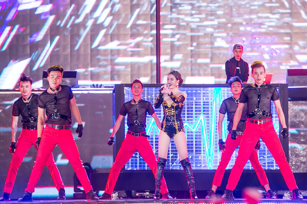 Luôn làm mới mình trên sân khấu, vì vậy, dù mang đến cho người hâm mộ 2 ca khúc quen thuộc là High của nhạc sĩ Thanh Bùi và Just you của nhạc sĩ Phương Uyên, màn biểu diễn đêm 15/01 của Hoàng Thùy Linh vẫn thu hút khán giả với gần 40 vũ công thuộc vũ đoàn Hoàng Thông và phần trang phục độc đáo được stylist Hoàng Ku chuẩn bị.