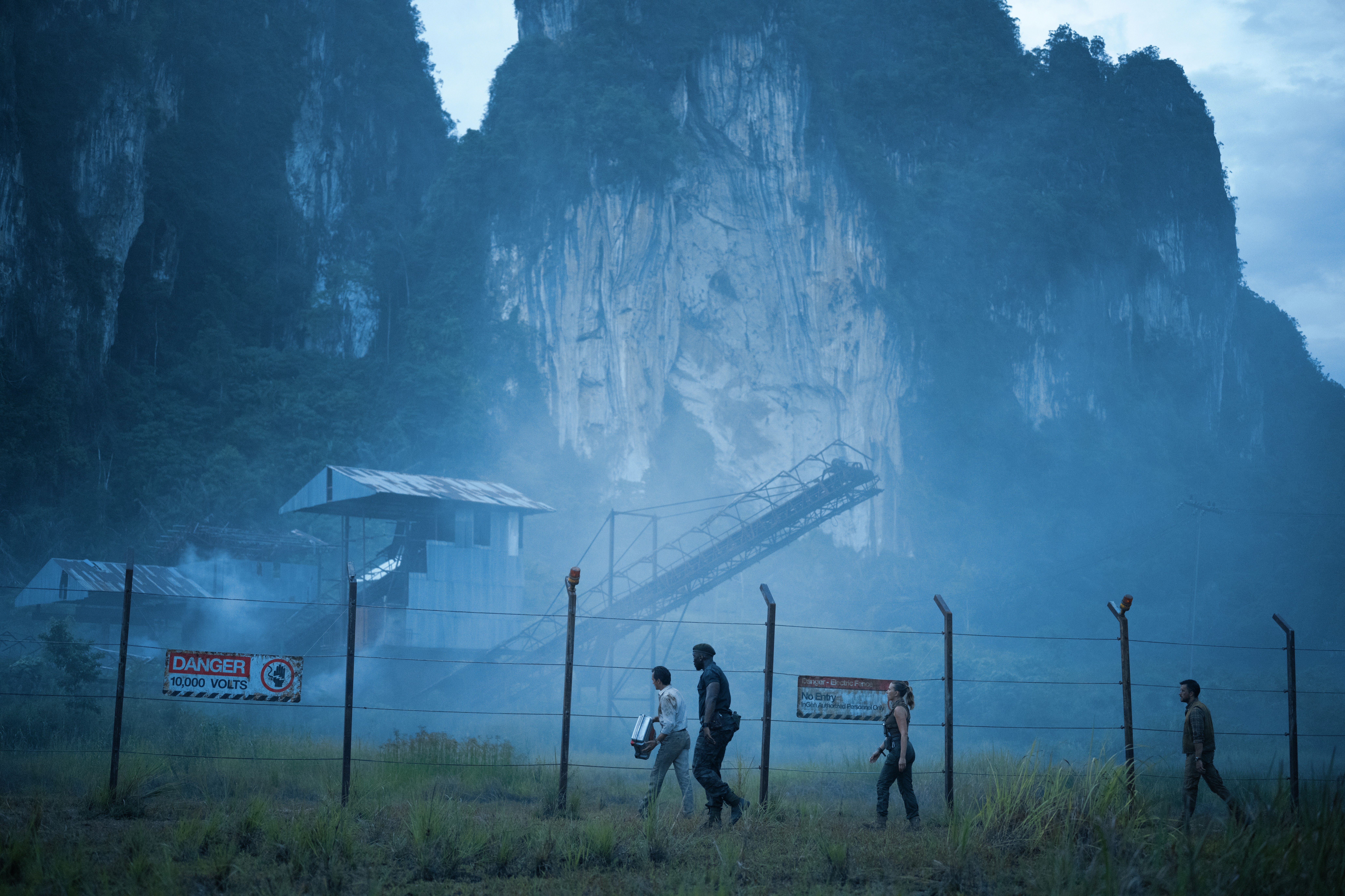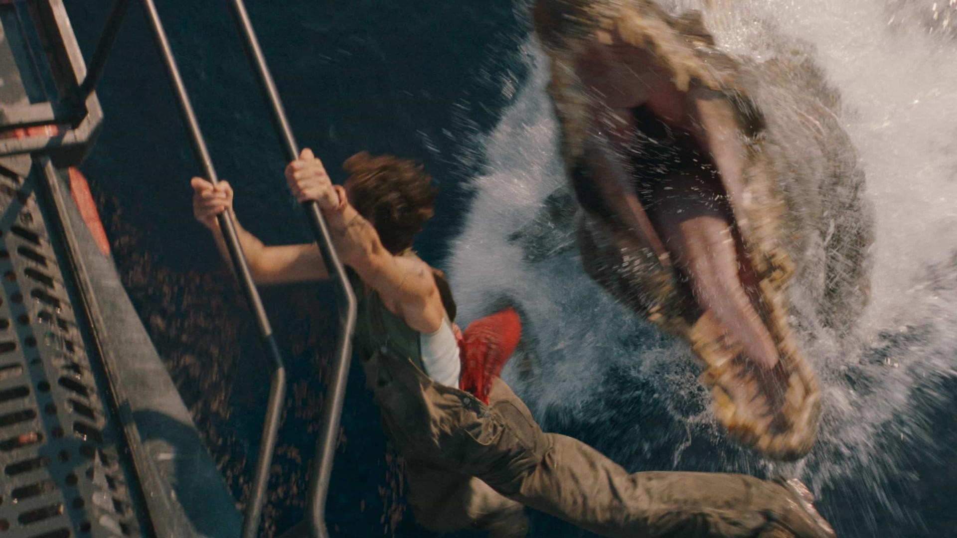 Cùng tham gia hành trình căng thẳng xuyên Đại Tây Dương còn có một nhà cổ sinh vật học đẹp trai (Jonathan Bailey) và thuyền trưởng của con tàu (Mahershala Ali, cũng không kém phần cuốn hút), và một nhóm nhân vật khác. Nhưng trước hết, họ phải đến được bờ. Các thành viên trong đoàn bị ném xuống biển khi tàu bị lật ở vùng nước nông, trong khi những con khủng long biết bơi đói ăn lùng sục quanh đó.