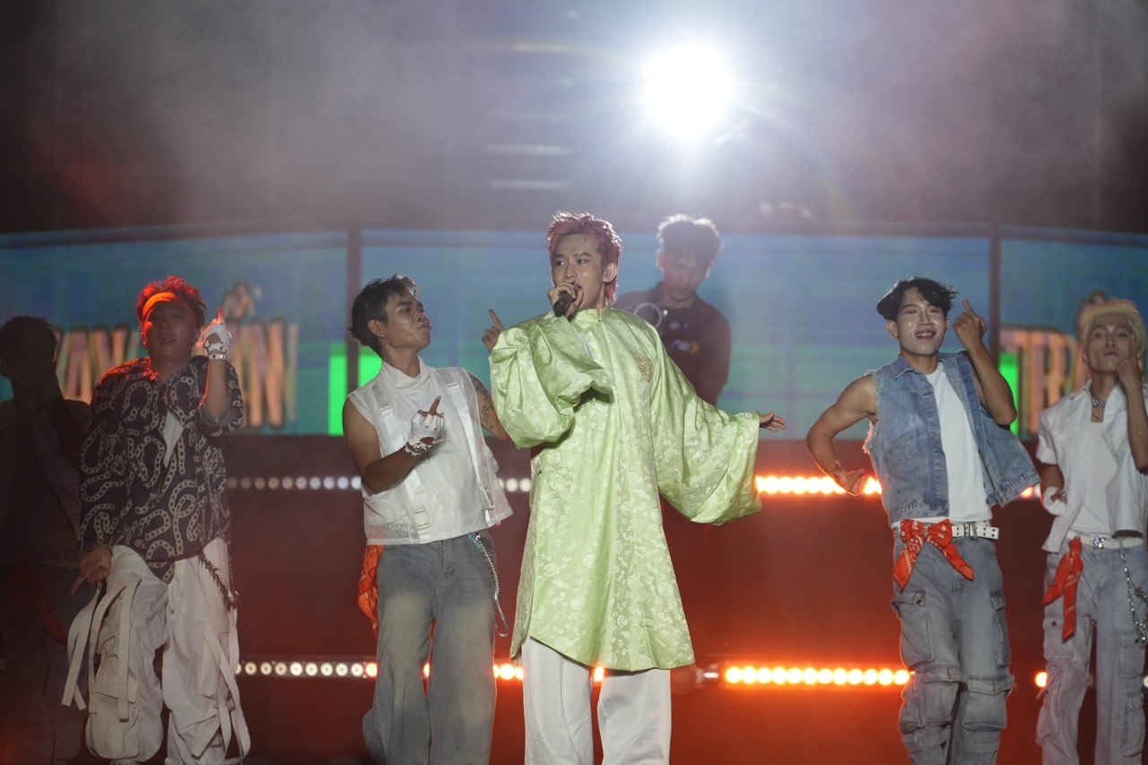 Sân khấu tiếp tục với Quân A.P – giữ vững phong độ bằng các bản hit quen thuộc, để rồi nhường sân cho Gemini Hùng Huỳnh. Anh mang đến một set diễn ấn tượng với hình ảnh “tiên tử” cổ trang và phần trình diễn vũ đạo gợi cảm xúc thị giác mạnh mẽ. Cả sân khấu thực sự bùng nổ khi ba cái tên Gemini Hùng Huỳnh – Quân A.P – Hurrykng hội tụ trong bản hit Đầu đội sừng. Đây là lần hiếm hoi đội hình đầy đủ của ca khúc được trình diễn trực tiếp, khán giả được thưởng thức trọn vẹn sự kết hợp hài hòa giữa 3 nghệ sĩ tài năng. Gemini Hùng Huỳnh đã thể hiện những động tác vũ đạo mượt mà, đầy quyến rũ khiến khán giả không thể rời mắt. Quân A.P với chất giọng siêu cuốn đã làm chủ được không gian, trong khi Hurrykng mang đến những verse rap đầy lửa khiến cả quảng trường như bùng nổ. Sự kết hợp này tạo nên một màn trình diễn hoàn hảo, thể hiện được tinh thần đoàn kết và tài năng của từng cá nhân.