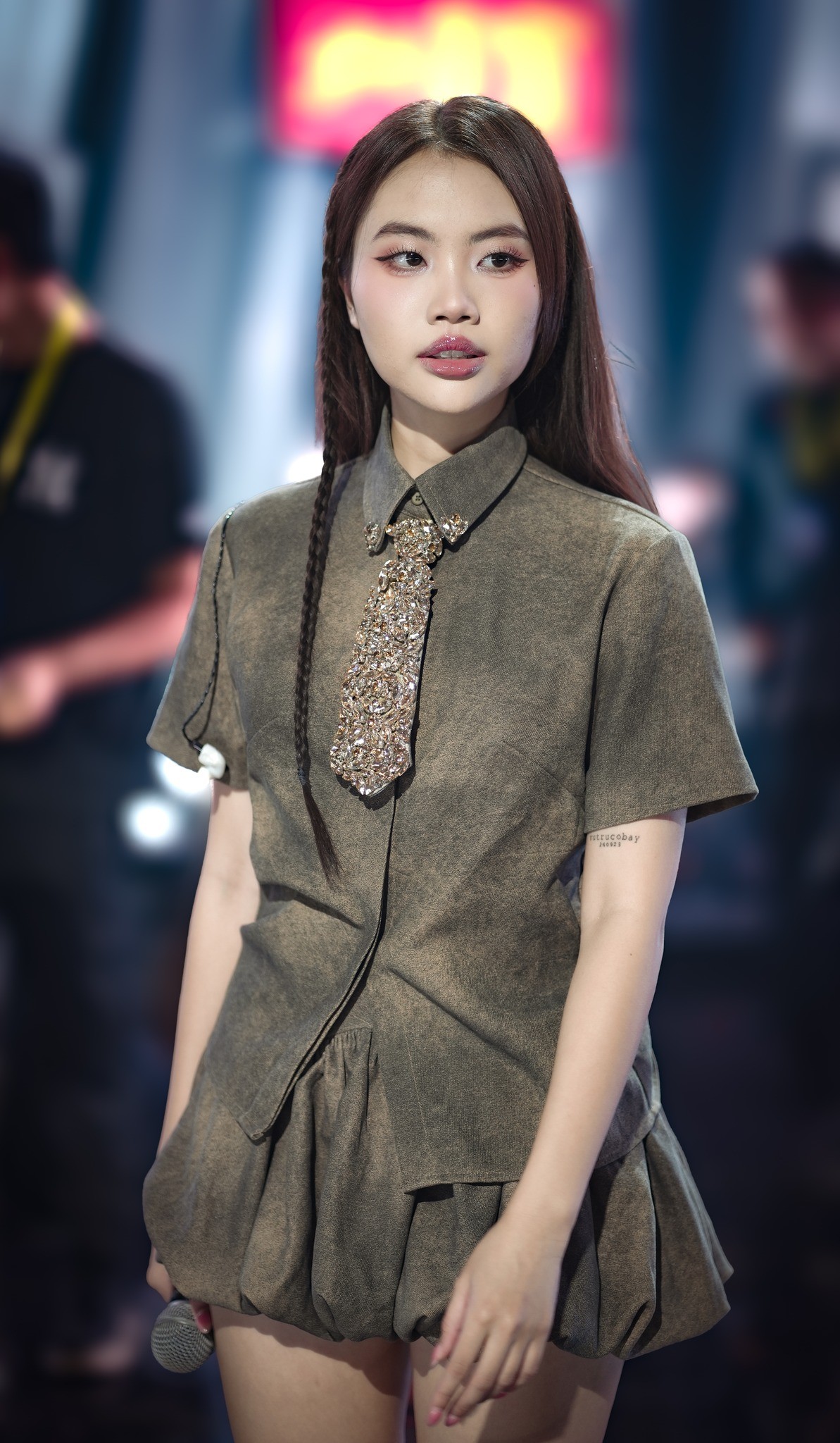 | Chi Pu thích thú khi bản hit của mình được trình diễn bởi Ngọc Phước tại 'Chị đẹp đạp gió 2024' | |