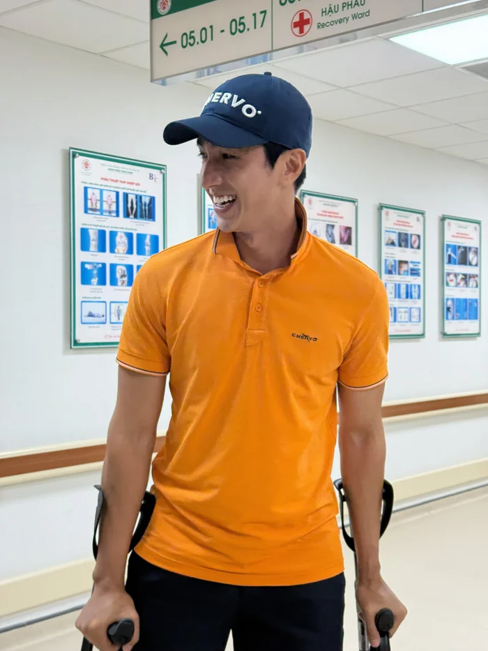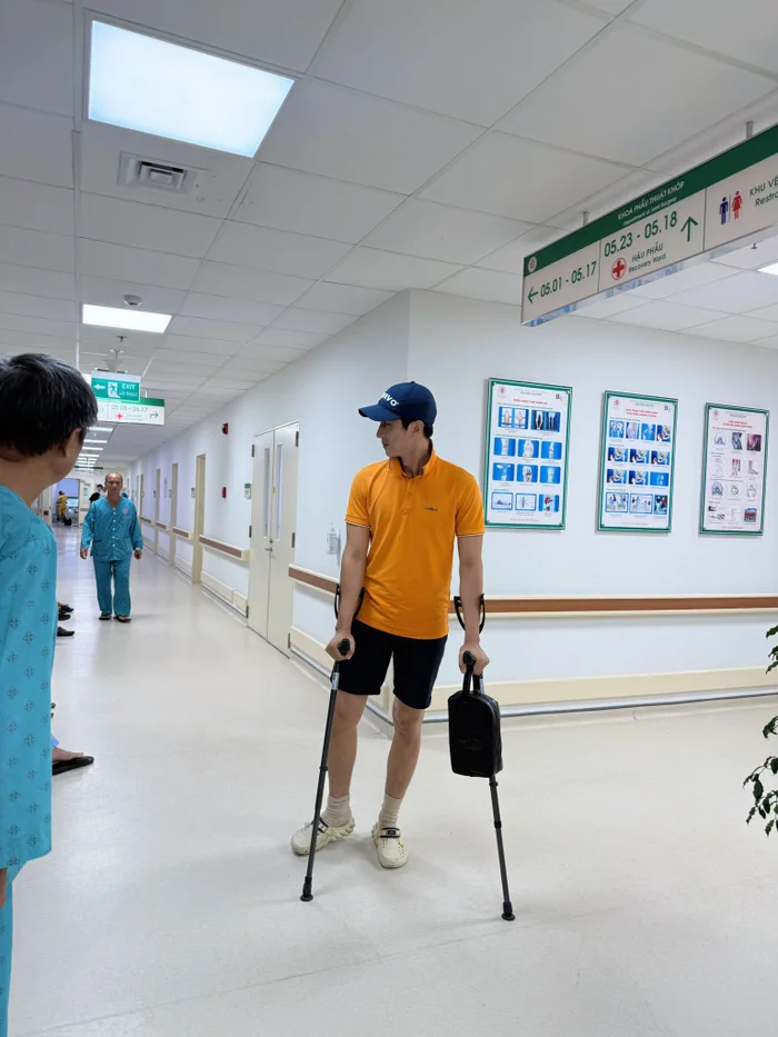 (TGĐA) - Diễn viên Bình An vừa khiến người hâm mộ không khỏi lo lắng khi xuất hiện với hình ảnh chống nạng và phải đi khám bệnh cùng vợ là Á hậu Phương Nga.