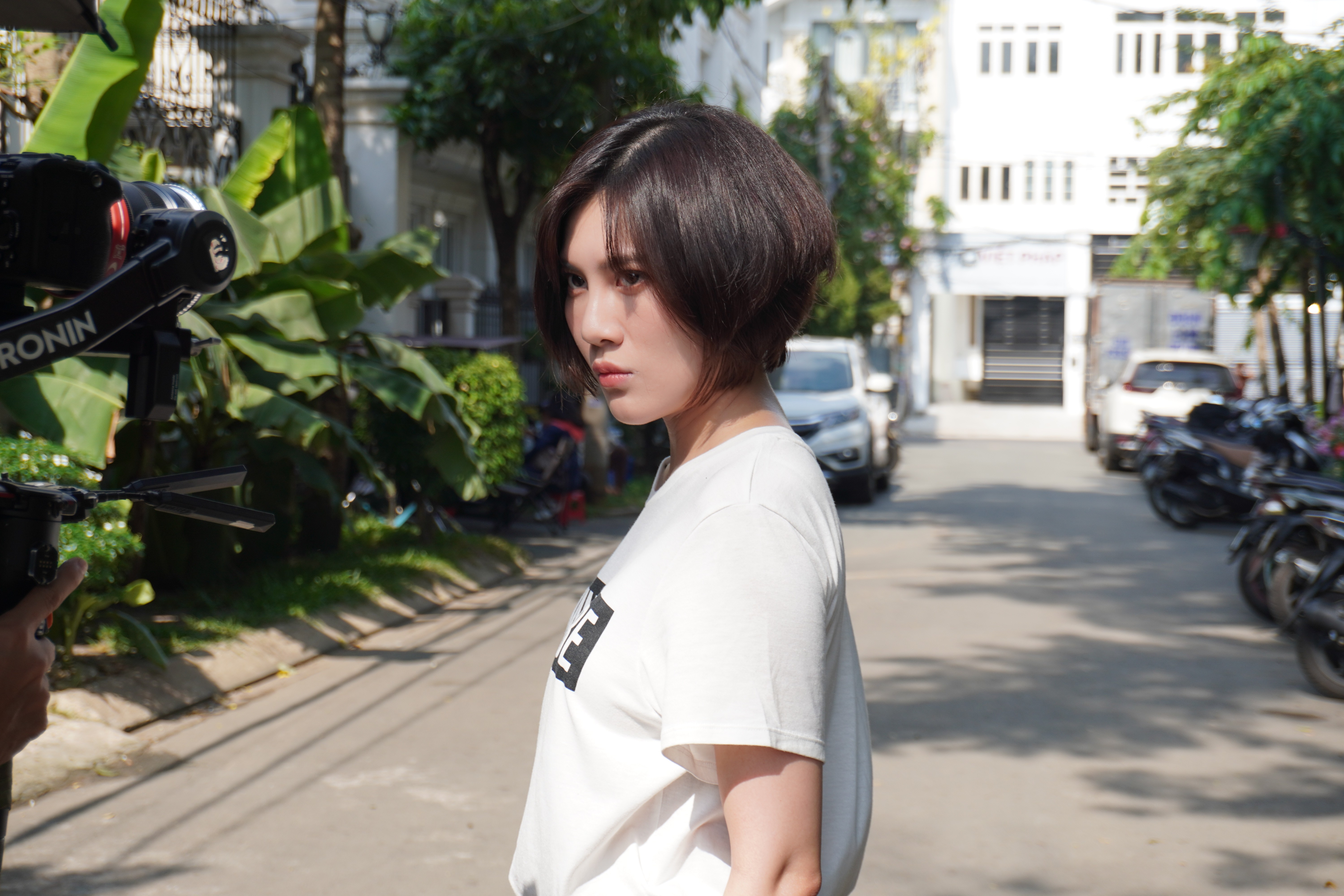 Người đẹp 9X chia sẻ, vốn là người "sợ nắng", cô đã chấp nhận tắm da rám nắng tự nhiên làm bối cảnh quay phim ngoại cảnh tại nông trại. Không chỉ vậy, cô còn giảm 8kg để có ngoại hình phù hợp với nhân vật Duyên.