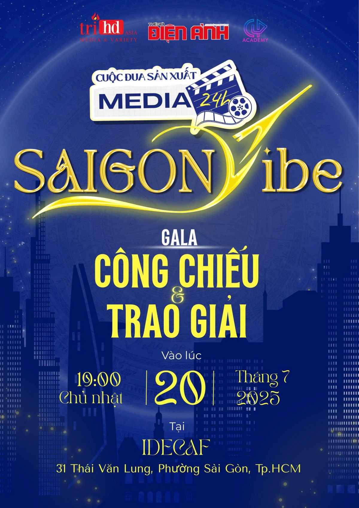 (TGĐA) - Ban Tổ chức cuộc thi làm phim ngắn Cuộc đua sản xuất Media24H 2025 vừa chính thức công bố thời gian và địa điểm tổ chức đêm Gala Công chiếu & Trao giải. Sự kiện sẽ diễn ra vào 19h00 Chủ nhật, ngày 20/07/2025 tại Sân khấu IDECAF (31 Thái Văn Lung, Phường Sài Gòn, TP. HCM). Đêm Gala với chủ đề “Saigon Vibe” hứa hẹn sẽ là điểm tụ hội sôi động của cộng đồng sáng tạo làm phim trẻ Việt Nam.