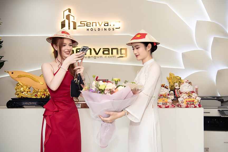 Để chào đón vị khách quốc tế, Hoa hậu Ý Nhi đã tâm huyết chuẩn bị những món quà đặc biệt là nón lá và chiếc áo dài truyền thống màu xanh. Miss World Scotland 2024 cũng vô cùng tinh tế. Cô khiến Ý Nhi bất ngờ khi xuất hiện trong chiếc áo dài cách tân màu đỏ ngay lần đầu gặp gỡ và mang theo nhiều quà tặng độc đáo. Sau đó, hai nàng hậu lên đường thăm thú một số địa điểm nổi tiếng ở Thành phố Hồ Chí Minh.