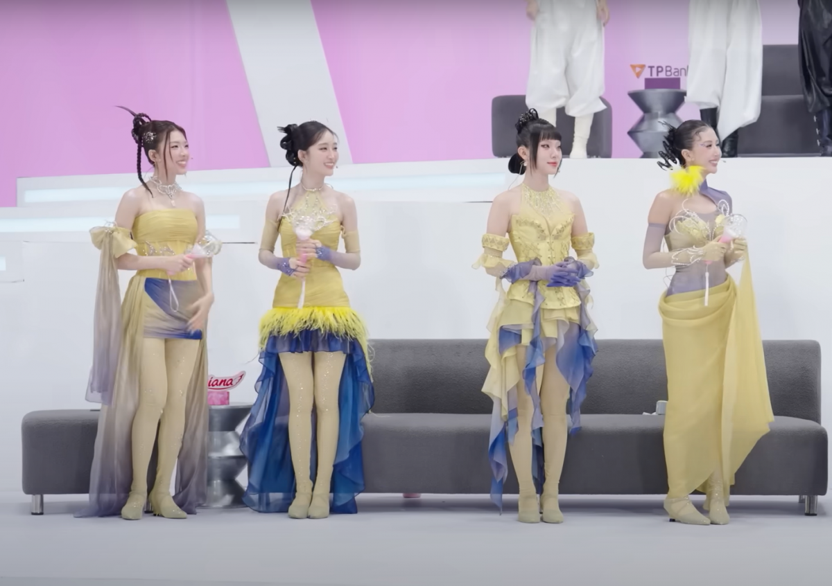Juky San diện một bộ trang phục màu vàng chủ đạo, được lấy cảm hứng từ hình ảnh Hằng Nga giáng trần. Cô khiến khán giả “sốc visual’, thu hút độ thảo luận lớn trên nền tảng xã hội.