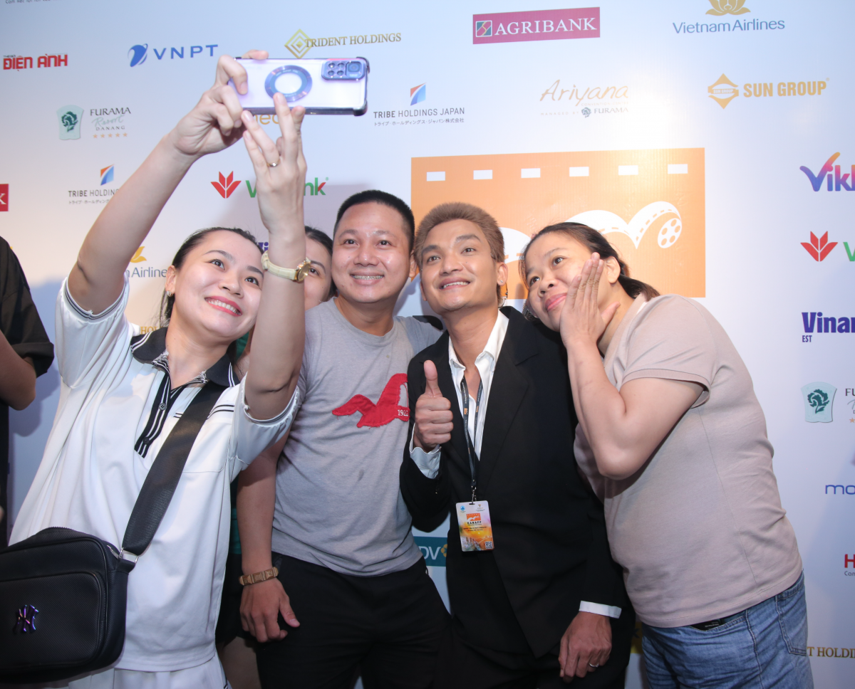 | Mạc Văn Khoa, Mai Cát Vi cùng team 'Út Lan' phấn khích với khán giả tại DANAFF III |