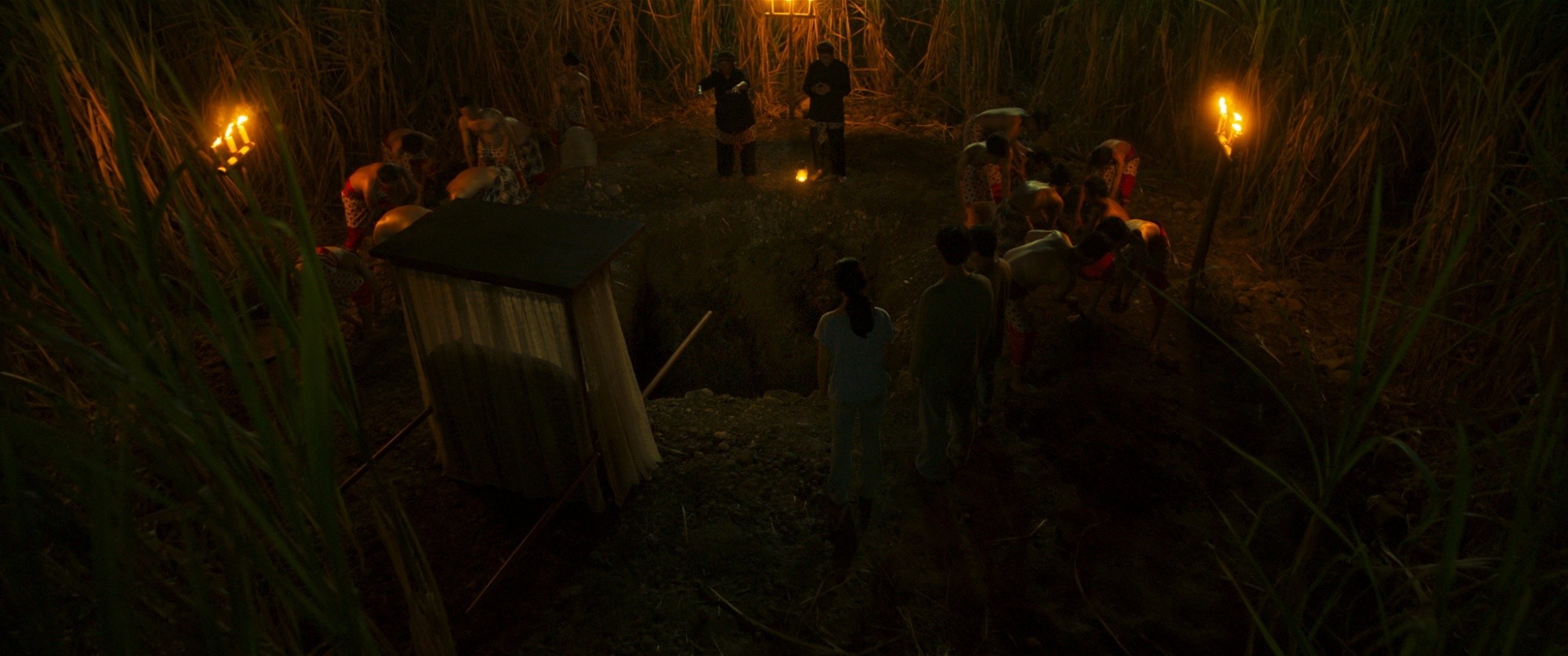 Một trong những phân cảnh đậm tính điện ảnh của Ma xưởng mía là buổi biểu diễn “wayang” - múa rối bóng mà không thấy người điều khiển con rối. Đây là hình thức rối bóng truyền thống của Indonesia, vốn gắn liền với nghi lễ kể lại sử thi, truyền thuyết hoặc mang tính răn dạy đạo đức. Nhưng trong phim, “wayang” được biến tấu thành một nghi thức ma quái: khi tấm màn chiếu bóng trở thành cánh cổng kết nối người xem với cõi ma quỷ.