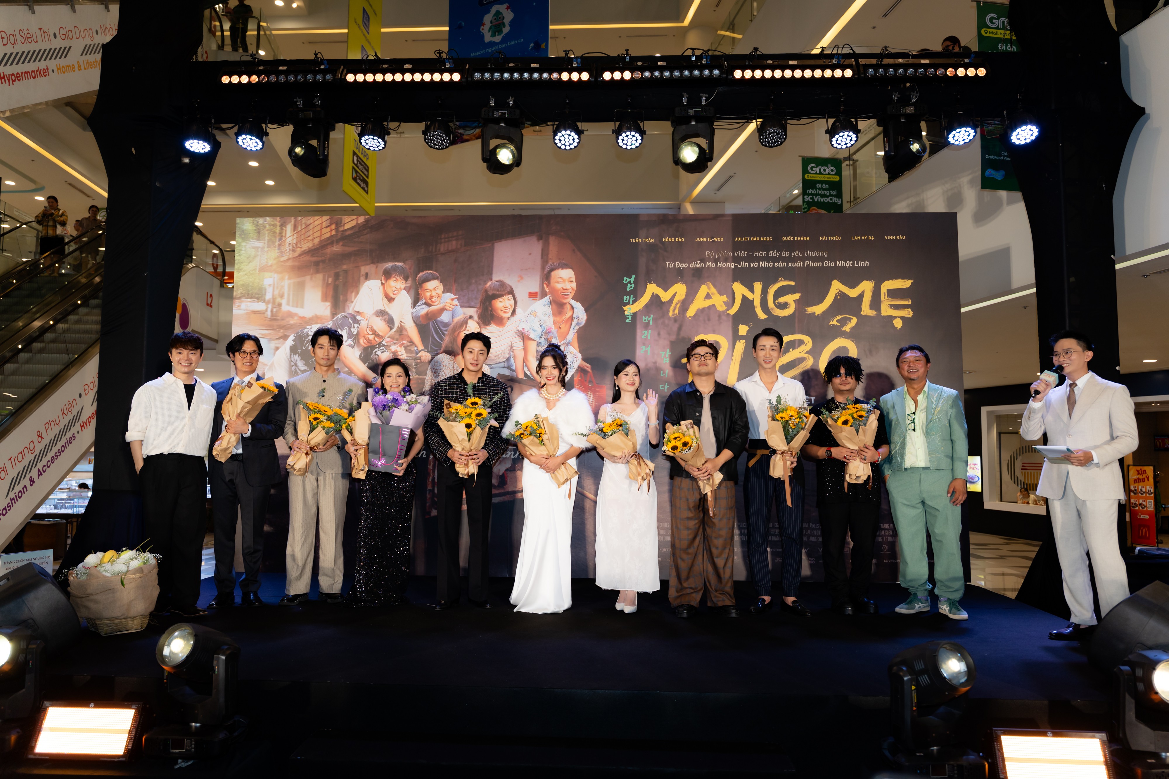 Tối 29/7, sự kiện ra mắt phim Mang mẹ đi bỏ đã diễn ra tại TP. HCM quy tụ ekip đoàn phim như: Đạo diễn Mo Hong Jin, Tuấn Trần, Hồng Đào, Jung Il Woo, Juliet Bảo Ngọc, Vỹ Dạ, Quốc Khánh, Hải Triều, Vinh Râu... cùng đông đảo các nghệ sĩ: Thu Trang, Ngô Kiến Huy, Cris Phan, Sam, Diễm My 9x, Phương Anh Đào, Trương Quỳnh Anh, Hoa hậu Tiểu Vy, Khánh Vân… tham dự thảm đỏ.