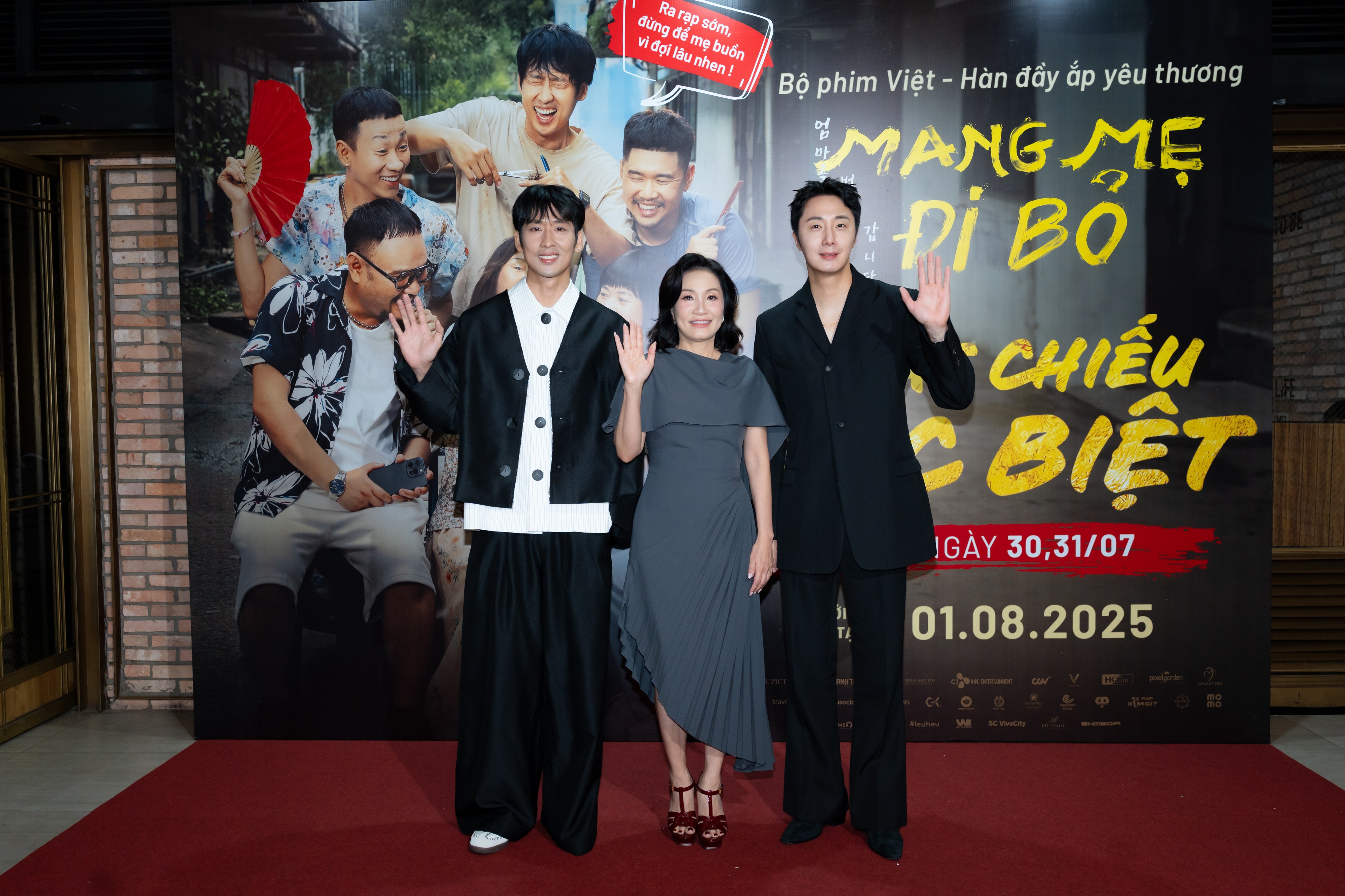 Đáng chú ý, sự xuất hiện của nam diễn viên Hàn Quốc Jung Il Woo trở thành tâm điểm của thảm đỏ. Ngay khi có mặt tại sự kiện, anh thu hút sự chú ý mạnh mẽ từ truyền thông và người hâm mộ nhờ ngoại hình nổi bật cùng phong thái lịch lãm, chỉn chu. Bên cạnh đó, diễn viên Tuấn Trần cũng gây ấn tượng không kém với vẻ ngoài điển trai và phong cách tự tin. Khoảnh khắc cả hai cùng xuất hiện trên thảm đỏ tạo nên màn “đọ sắc” thu hút nhiều ống kính, góp phần tăng thêm sức nóng cho buổi công chiếu Mang mẹ đi bỏ.