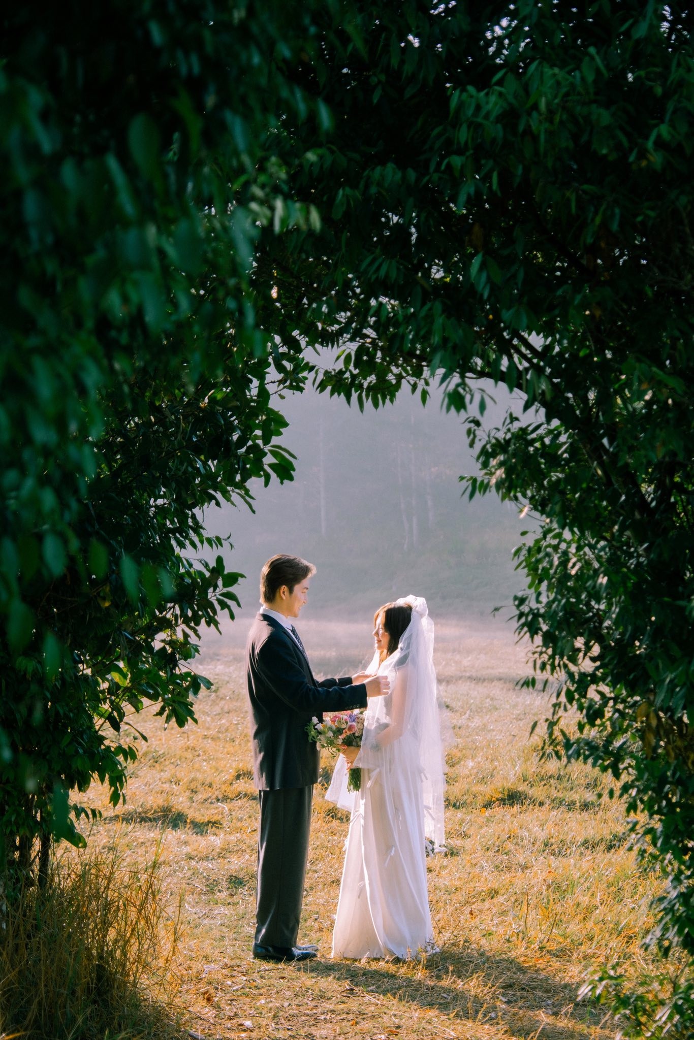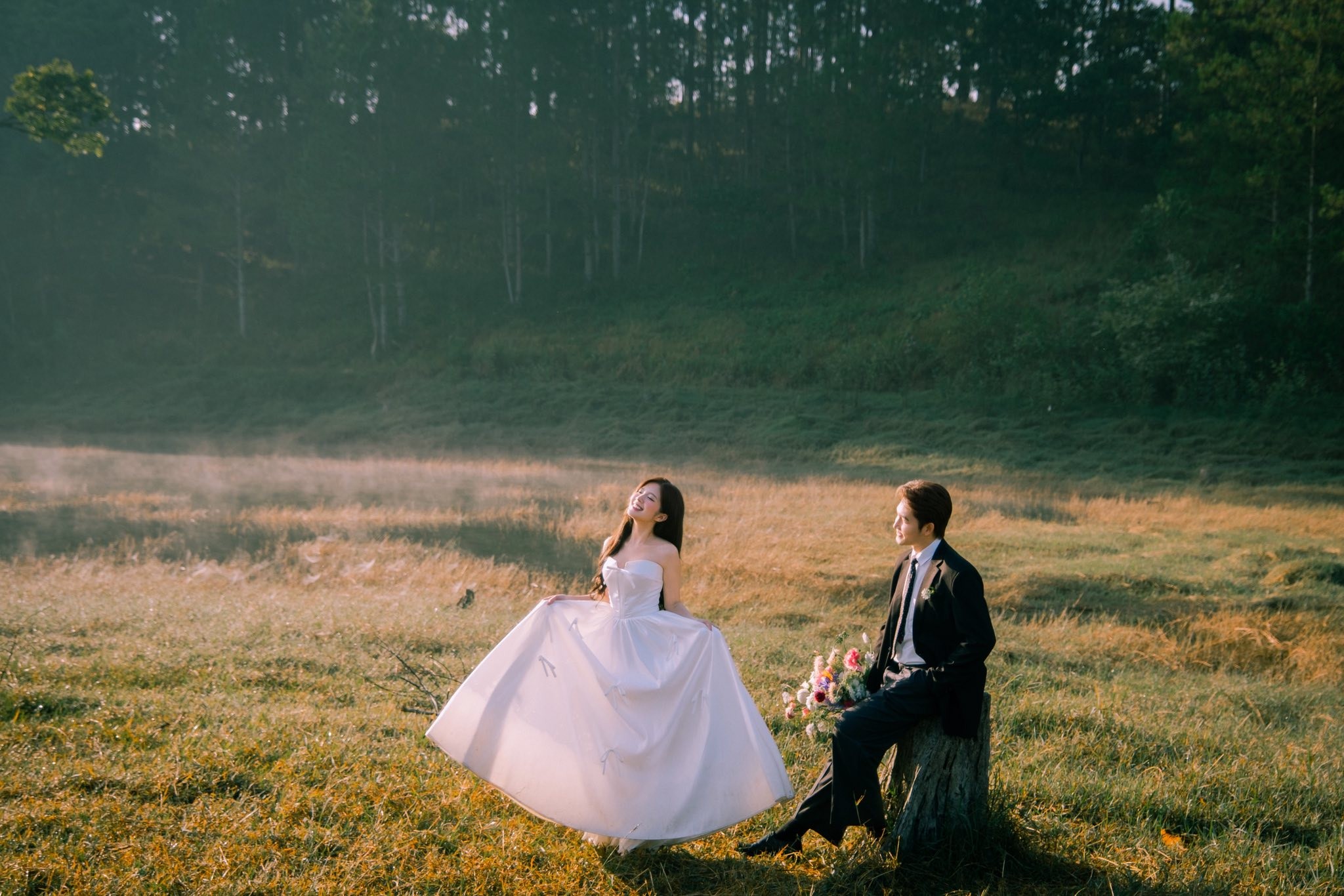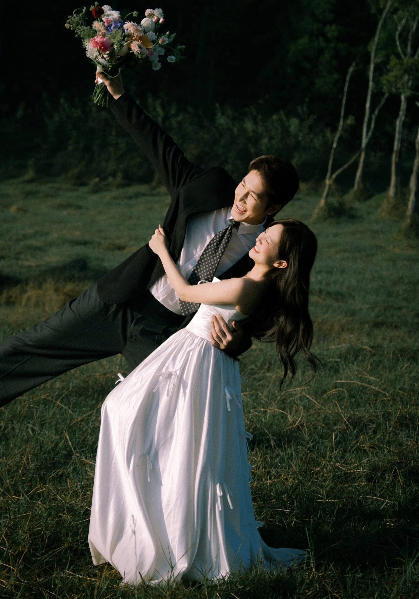 Bộ ảnh cưới của Đình Tú và Ngọc Huyền được thực hiện trong khung cảnh thiên nhiên thơ mộng, khi những tia nắng đầu tiên xuyên qua màn sương mờ ảo. Không gian huyền diệu này đã biến từng khuôn hình thành một thước phim điện ảnh đầy lãng mạn. Đặc biệt, những khoảnh khắc cả hai tay trong tay nhảy múa giữa làn sương sớm, hay ánh mắt dịu dàng trao nhau dưới nắng mai đã thực sự chạm đến trái tim người hâm mộ, khiến ai nấy đều phải "tan chảy" vì sự ngọt ngào.