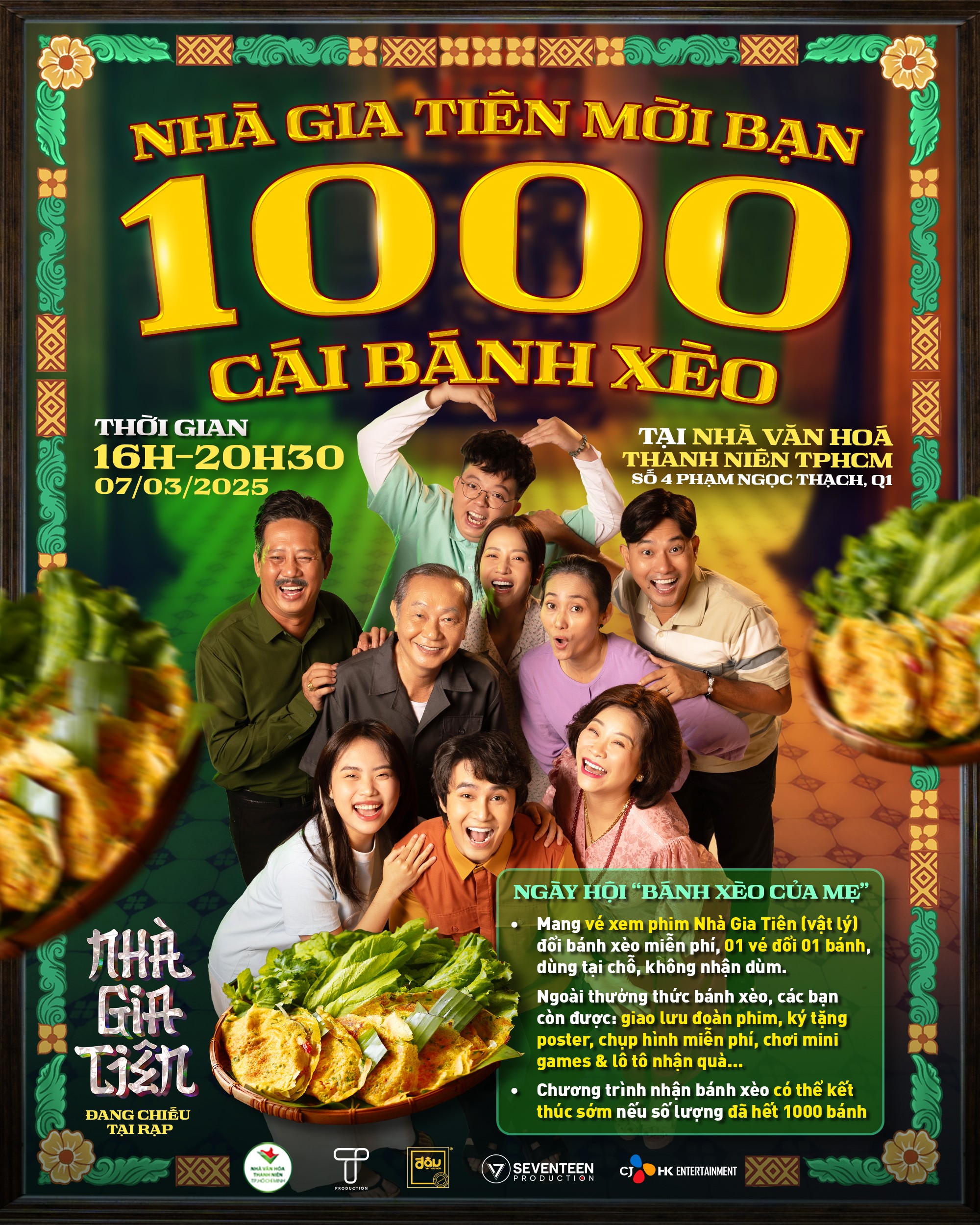 Khán giả chỉ cần mang theo 1 vé giấy xem phim Nhà Gia Tiên để đổi miễn phí 1 chiếc bánh xèo và tham gia giao lưu cùng diễn viên, ký tặng poster, chụp hình miễn phí, chơi trò chơi nhận quà.