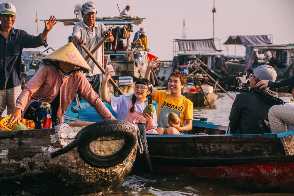 “Chi tiết em nhớ nhất nằm ở ngày quay đầu tiên. Do lu bu make up rồi chuẩn bị mọi thứ nên em không kịp ăn gì hết. Đến khi quay xong loạt cảnh ở chợ nổi về, em rất mệt và đói. Hôm đấy, má em mua quá trời bánh bò. Như mọi người cũng biết, bánh bò miền Tây rất ngon nên em mê và ăn ngay. Trong túi bánh có rất nhiều màu nên cứ màu nào em cũng thử, thử xong thấy màu nào cũng ngon rồi lại ăn tiếp và ăn rất nhiều. Chính vì lý do này khiến em bị nôn ói suốt. Cứ quay xong một cảnh là em lại nôn ói làm ê-kíp rất lo, tưởng sức khỏe em kém nhưng mọi người không có biết là do em ham ăn quá nên mới bị như vậy. Cả đoàn ai cũng cười sau khi được má em tiết lộ nguyên nhân. Giờ nhớ lại, em vẫn thấy vui” - Phương Mỹ Chi bật mí thêm.