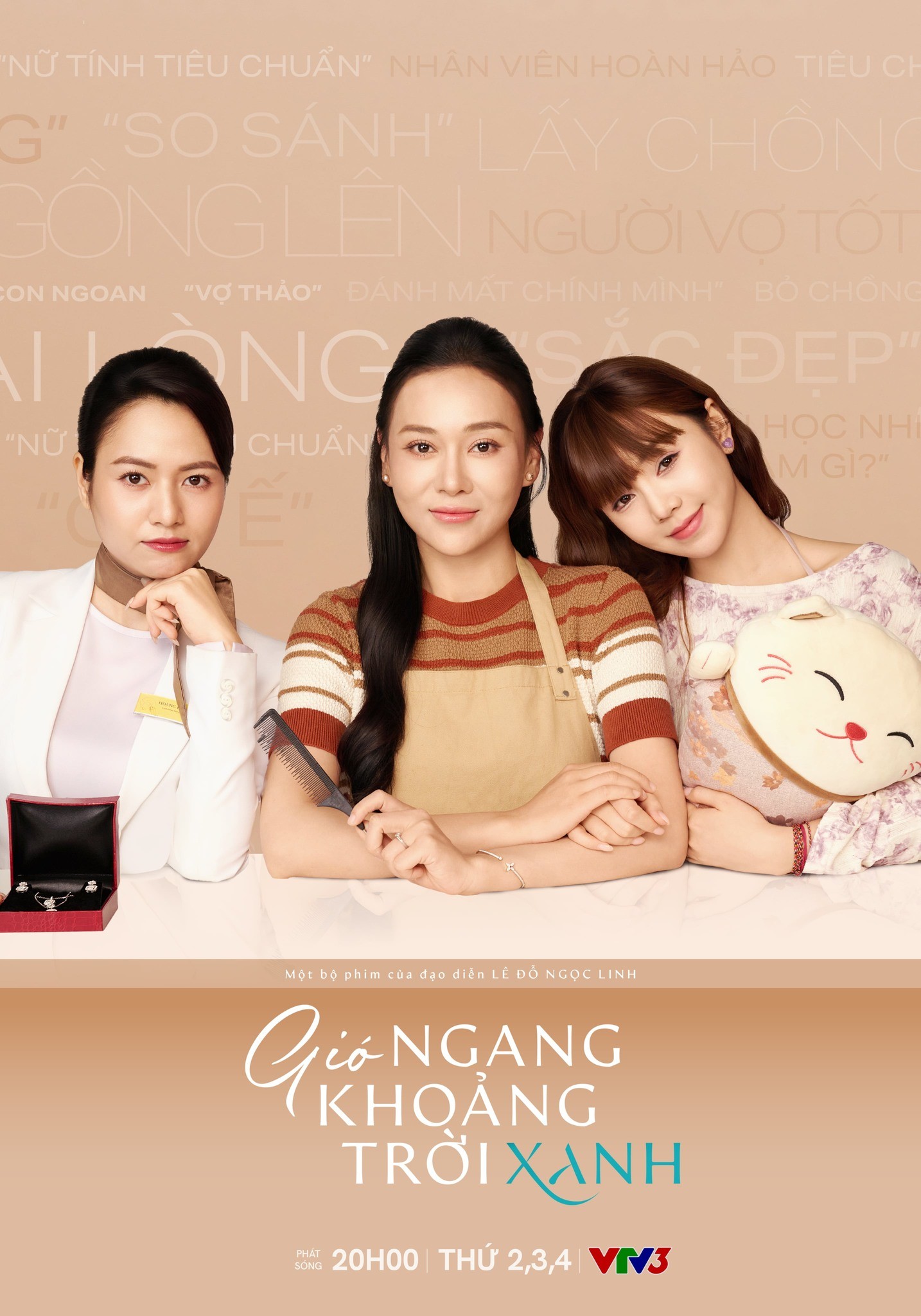 Bộ phim giờ vàng mới của VTV, Gió ngang khoảng trời xanh quy tụ ba gương mặt nữ chính được yêu mến: Phương Oanh (vai Mỹ Anh), Quỳnh Kool (vai Trúc Lam) và Việt Hoa (vai Châu Ngân). Mỗi nữ diễn viên sẽ hóa thân vào một người phụ nữ ngoài 30 với những hoàn cảnh và thách thức hôn nhân khác nhau, tạo nên bức tranh đa sắc về hành trình tìm kiếm hạnh phúc.
