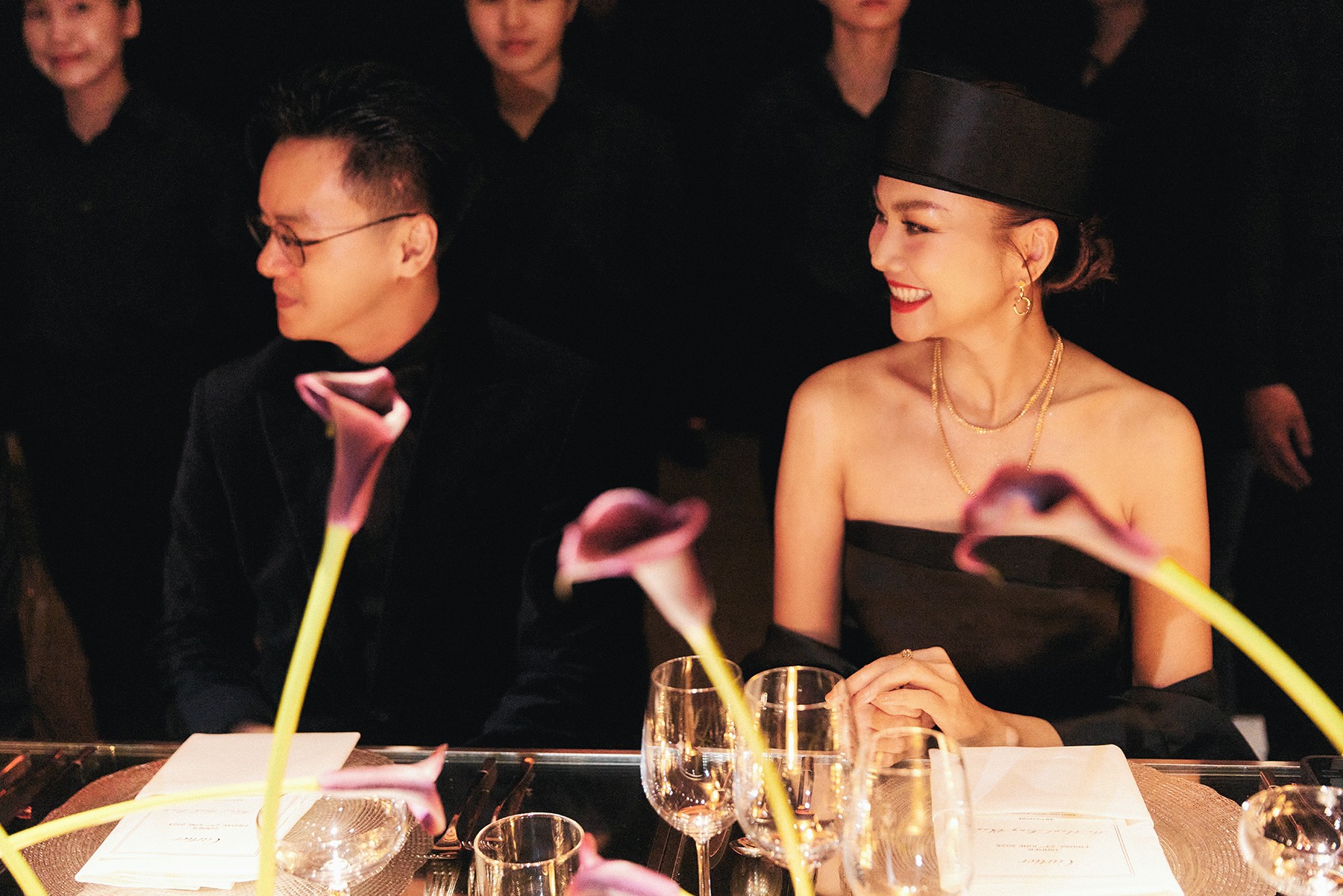 Tại sự kiện, cặp đôi diện trang phục ton sur ton đầy tinh tế và gợi cảm, trong đó Thanh Hằng khoe trọn vai trần quyến rũ trong bộ đầm thanh lịch, cổ điển, tạo nên một hình ảnh vừa sang trọng vừa rất gần gũi.