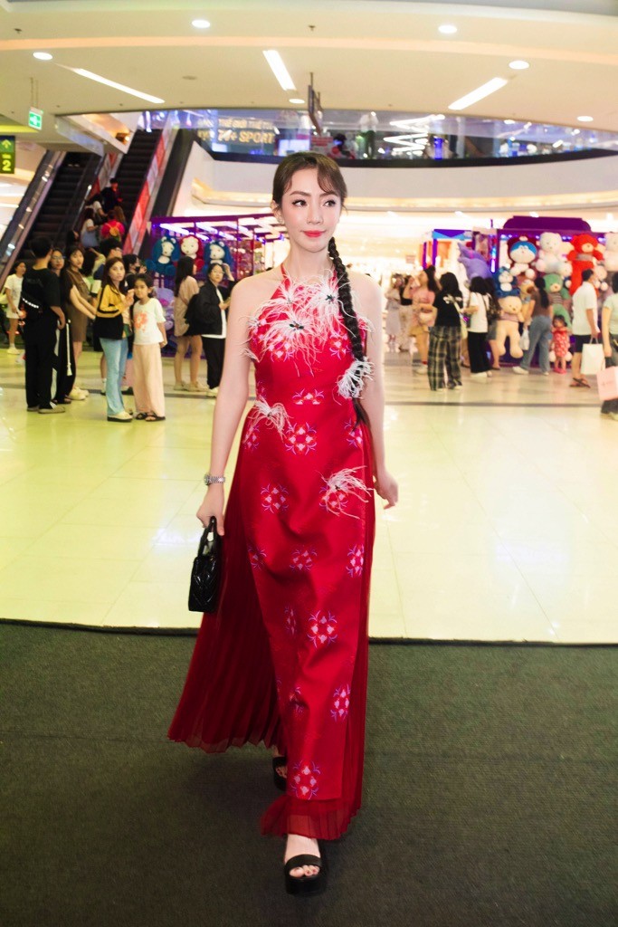 Tối 18/2, Thu Trang cùng nhiều nghệ sĩ tham gia sự kiện ra mắt phim mới Nhà gia tiên. Diện áo dài cách tân, Thu Trang được khen nhan sắc ngày càng thăng hạng. Đi cùng Thu Trang còn có các diễn viên Ma Ran Đô, Thiên Ân.